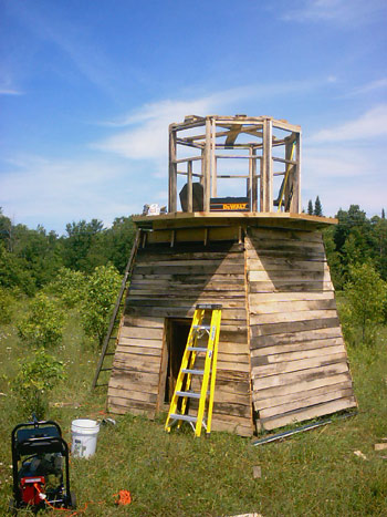 This was removed after the roof was complete and the siding was installed on the viewing area. |