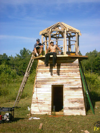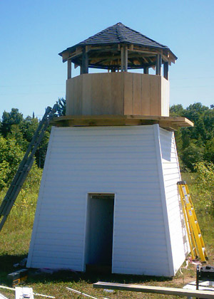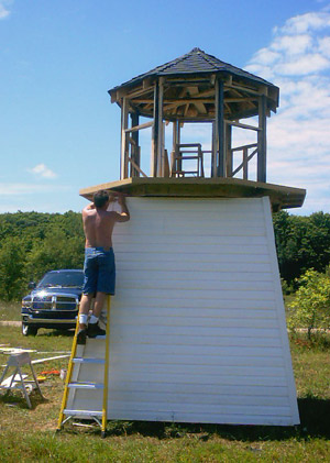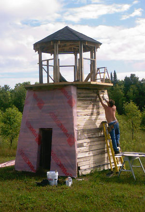 The first coat of paint goes on the observation tower |