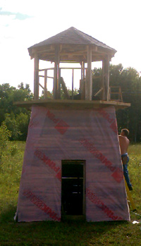 The upper part, wrapped and ready for siding.